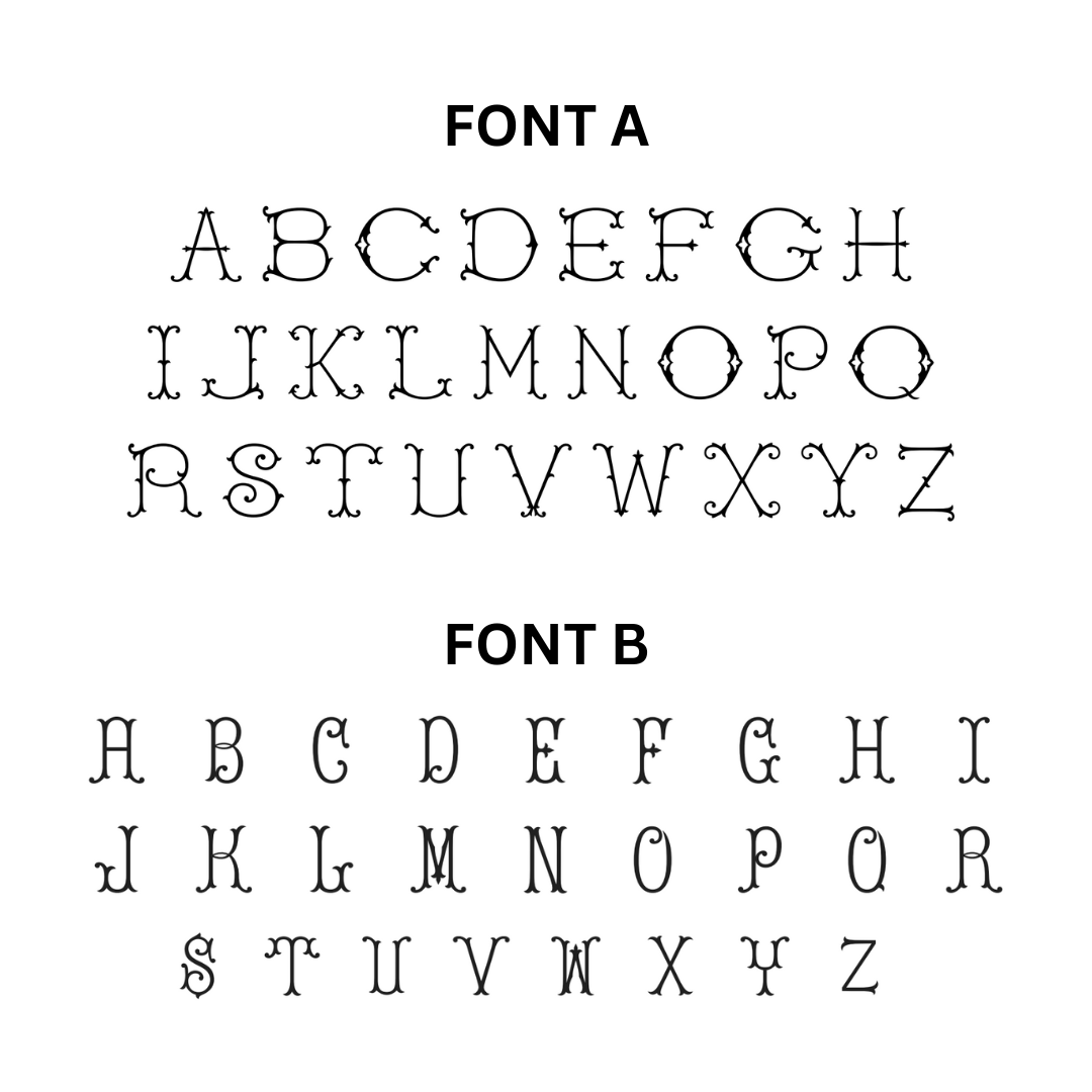 3. Choose the font type that you would like us to use for your initial. Please see the product images on this page to view font options. The initial thread color will be matched to coordinate with the sash design.